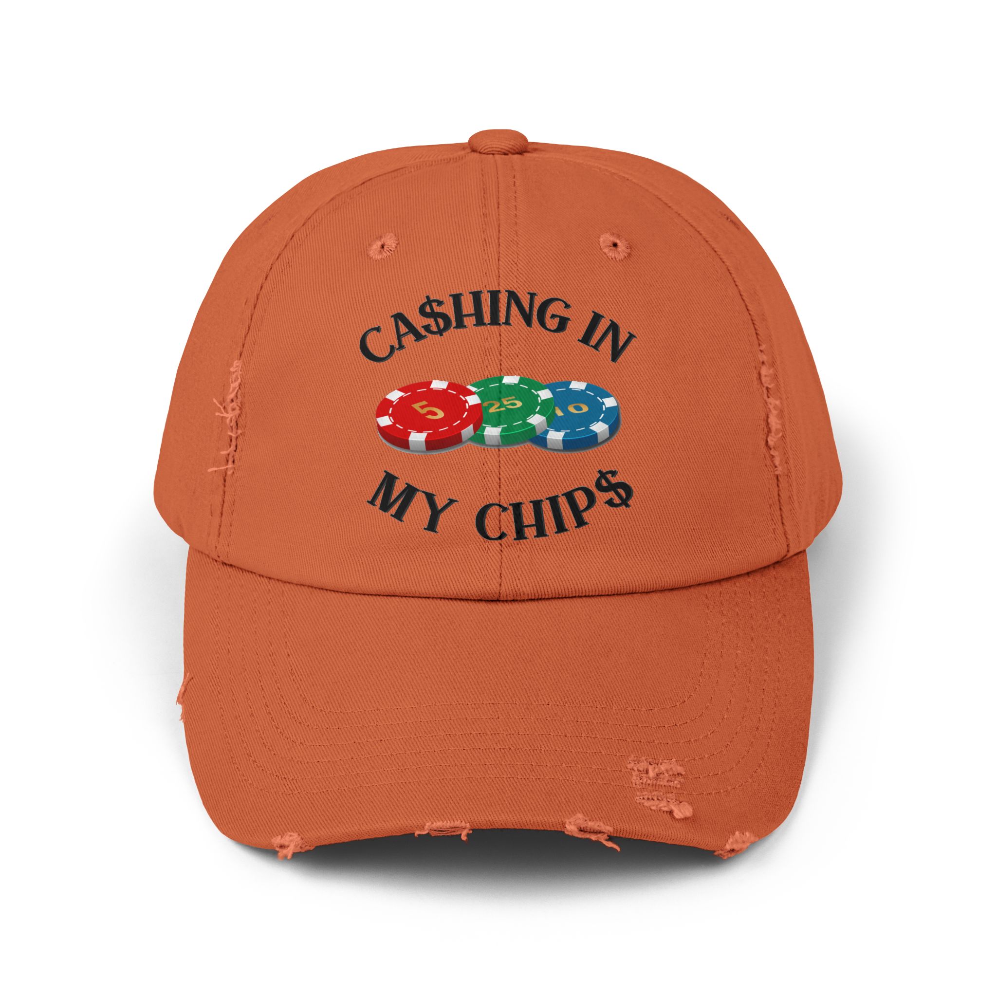 Some caps look like they were made yesterday. This one looks like it’s been on every adventure with you. The Ca$hing In My Chip$ Distressed Cap brings that lived-in, broken-in look that only comes with a life well lived — and it pairs perfectly with the lifestyle you’ve earned.